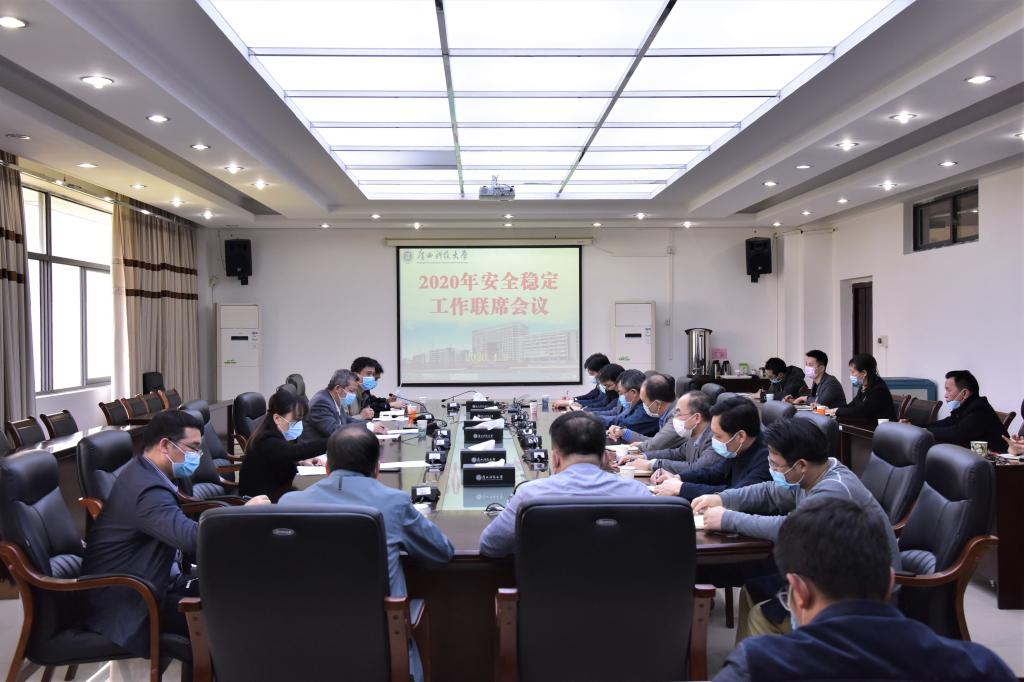 4月10日下午,学校在行政办公楼6—1会议室召开 2020年第一次安全稳定工作联席会议,校党委常委、副校长张发钦及学校安全稳定工作联席会成员单位负责人参加会议,会议由张发钦主持。