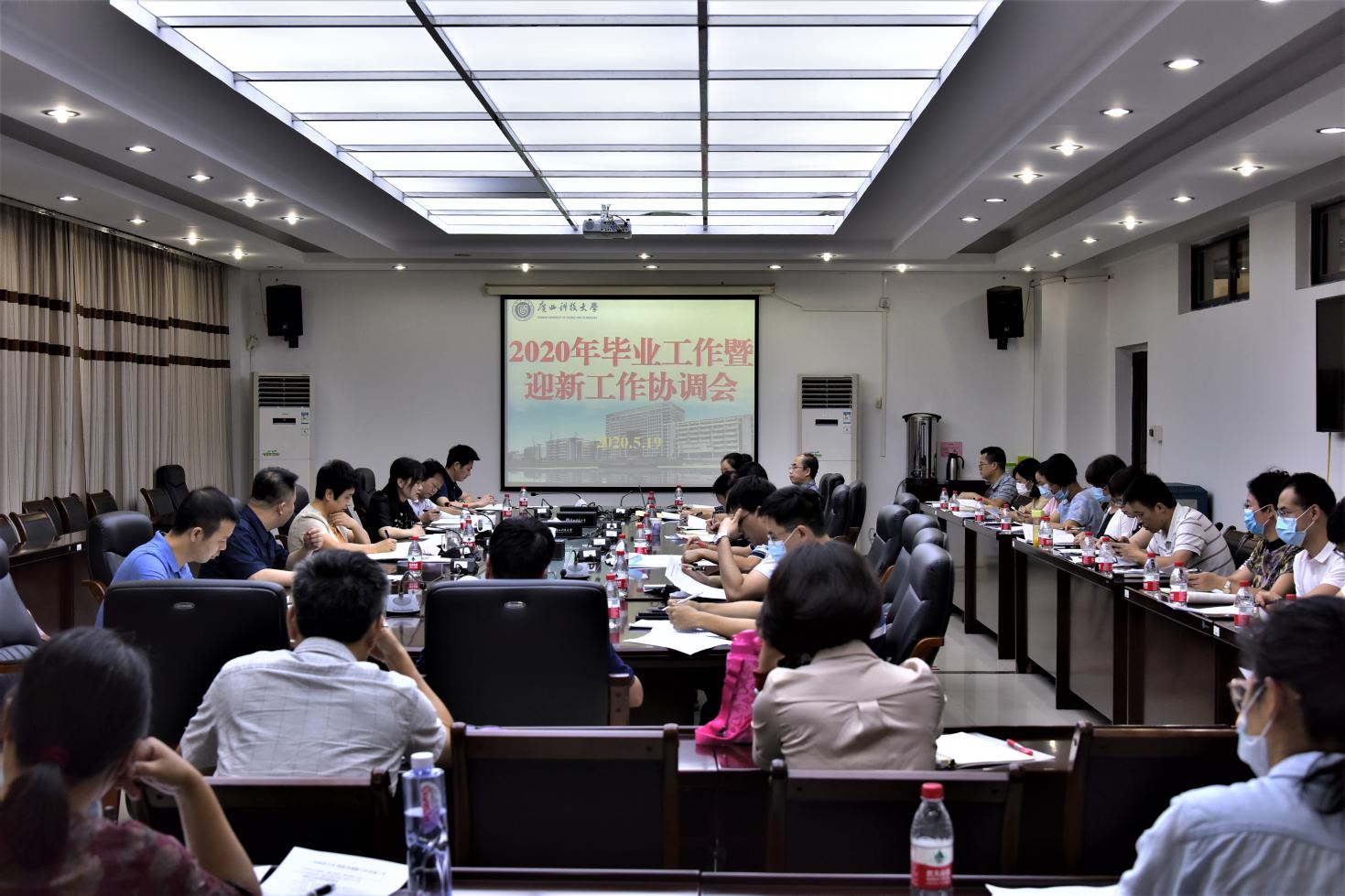 5月19日下午,学校在行政办公楼6—1会议室召开2020年毕业工作暨迎新工作协调会,就毕业生离校和下学期迎新工作进行布置。校党委副书记覃萍、各相关职能部门主要领导、各二级学院(部)分管学生工作领导参加会议。