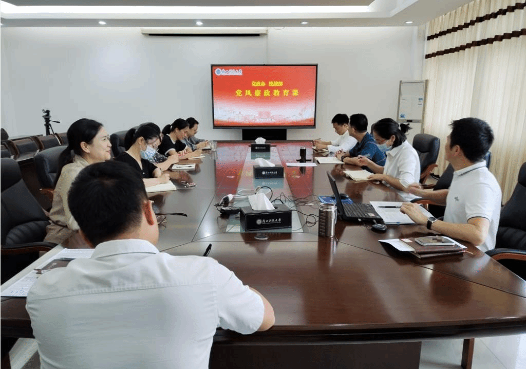 为进一步加强办公室干部队伍作风建设,不断提升履职尽责能力,推动学校事业高质量发展, 10月28日下午,党政办、统战部在办公楼5—1会议室开展全体科级及以上干部参加的党风廉政教育课活动。教育课由党政办副主任陈文彬主讲。