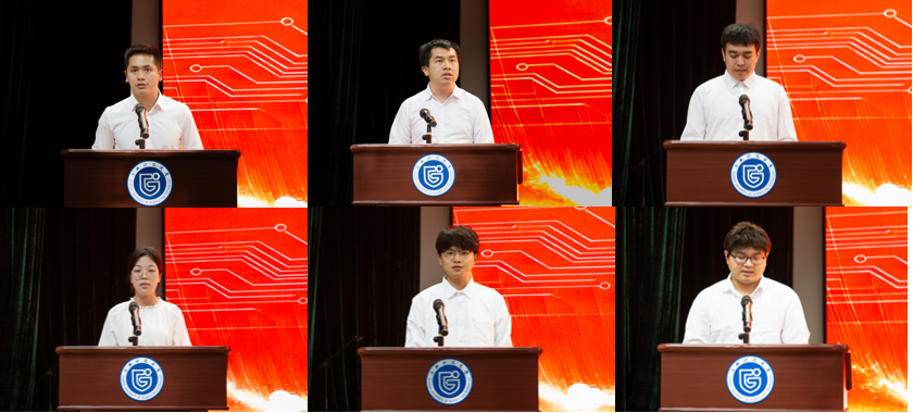 师生代表发言环节,来自教学、科研、学工、双创、文体等各条战线的代表分享了经验与感悟。系主任代表孙子君老师、双创中心代表李福章老师从教师角度畅谈了对学科建设与创新创业工作的思考。国家级奖项获得者本科生代表付紫旭、研究生代表董欠欠,学科竞赛获奖代表吴金发、刘晨晨,以及体育团代表梁家喜同学,则从学生成长的视角讲述了他们勤学笃行、挑战自我、为院争光的成长故事。他们的发言真诚而精彩,充分展现了电子工程学院师生昂扬向上的精神风貌。