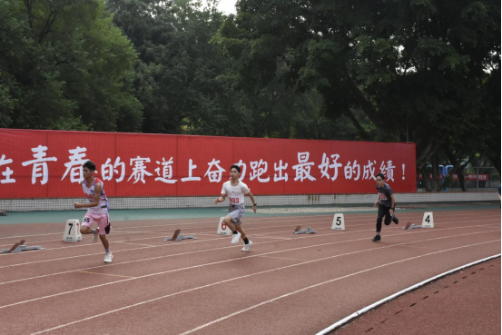 院运动会首先进行的是100米短跑比赛,运动健儿们迸发出强大的爆发力,誓要跑出青春赛道上最好的成绩,留给观众一个如“闪电般”掠过的背影。
