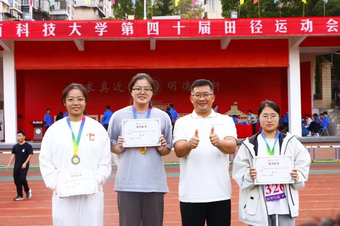 2025年11月6至7日,广西科技大学第四十届田径运动会如期举行,我院学子在此次运动会中荣获团体总分第二名,男子团体总分第一名,女子团体总分第三名,以及9项单项冠军,刷新了学院在校运会历史上最好成绩!