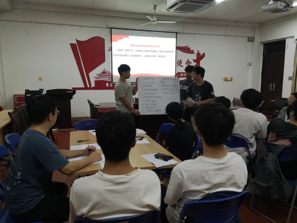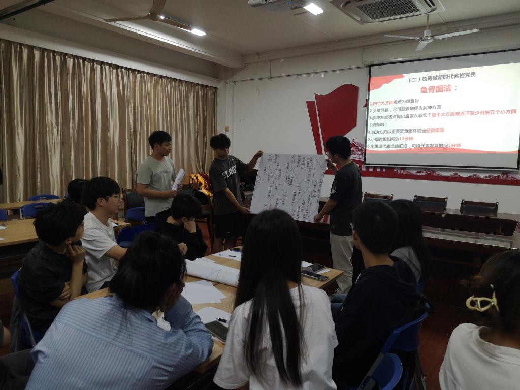 5月19日晚,在学院会议室,春季学期预备党员培训班的讨论学习环节正在进行。围绕着“做新时代合格共产党员”主题,学员们展开学习讨论。学习讨论运用了行动学习法工具,分小组进行。首先围绕“新时代存在不合格党员的原因是什么”,各小组运用头脑风暴法展开热烈讨论,然后各小组派代表作了小组讨论结果的交流发言;然后围绕“如何做新时代合格共产党员”主题,小组运用鱼骨图法进行了讨论学习,并绘制了解决问题的鱼骨图,各小组派代表就小组的学习观点在全班进行交流发言;最后指导老师就学习讨论进行了点评和总结。行动学习法的工具运用,激发了学员们的学习积极性和主动性,讨论学习现场既紧张又气氛热烈,达到了预期的培训学习交流提高目的。