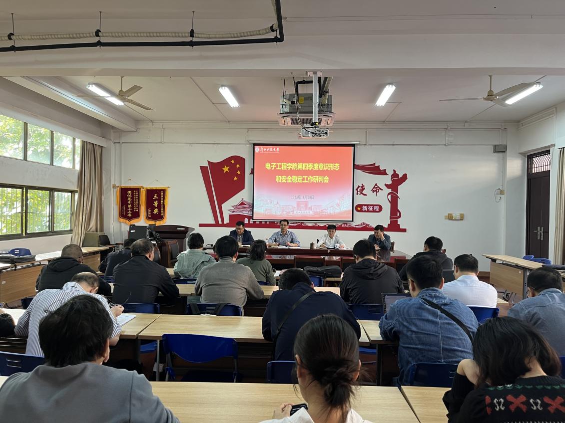 11月28日下午,学院在三教四楼学院会议室召开2023年第四季度意识形态和安全稳定形势分析研判会,学院党委委员、党支部书记、各系主任、辅导员、班主任参加会议。本次会议由学院党委书记朱广生主持。