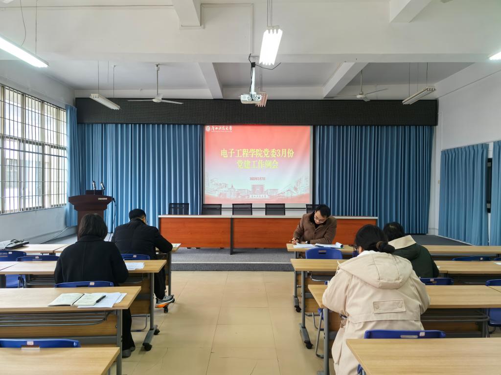 3月7日下午,学院党委在工训3号楼301会议室召开3月份党建工作例会,学院党委委员、各支部书记参加会议,会议由学院党委书记朱广生主持。