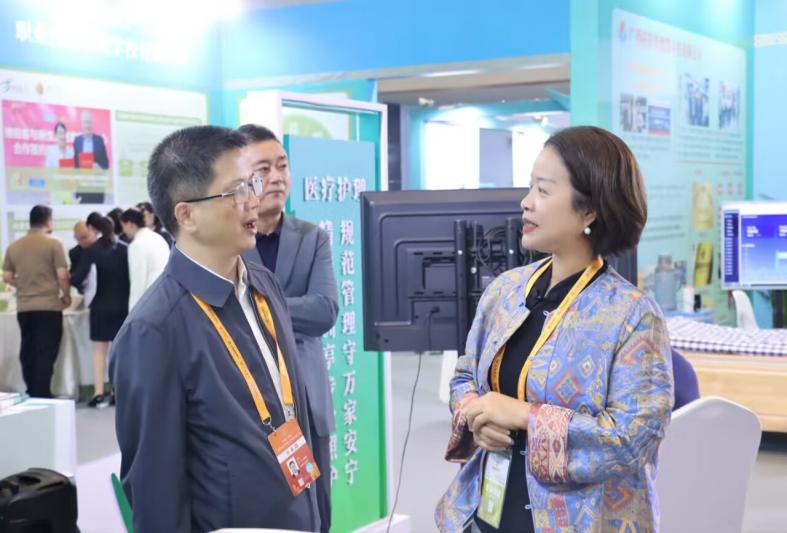 在创新成果交流活动中,我校主要展示“八桂劳务品牌”——医疗护理员项目。2024年9月,我校协助柳州人社部门完成了医疗护理从业人员初级职业技能等级评价考核工作,该项目是国家发布医疗护理员职业标准之后柳州市组织的首批医疗护理从业人员职业技能等级评价考核,也是全区该项目首批考核工作。本次参展通过现场演示、资料展示等多种形式,向现场观摩人员生动地呈现了我校在医疗专业护理员方面严谨而科学的培训鉴定体系。