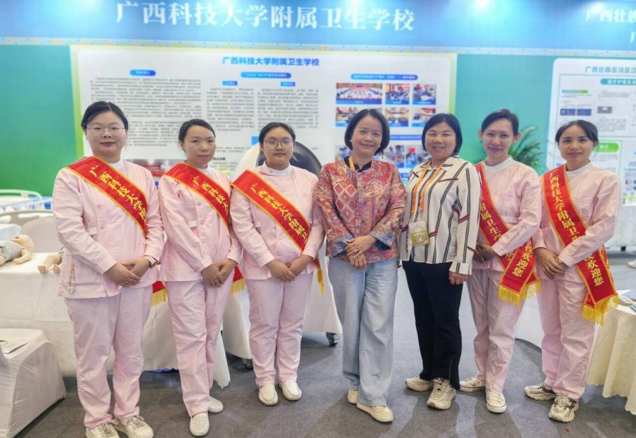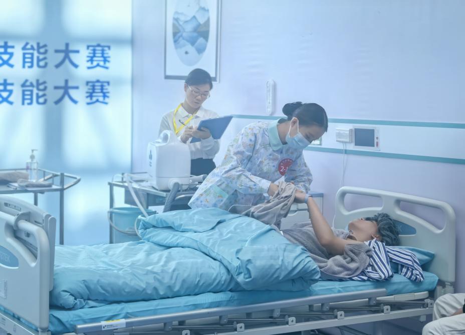 在广西壮族自治区第三届职业技能大赛、第一届广西乡村振兴技能大赛暨第八届农民工技能大赛中,我校派出由杨丽、张彬妮为指导老师和2位选手组成的参赛队,角逐医疗护理员技能比赛。
