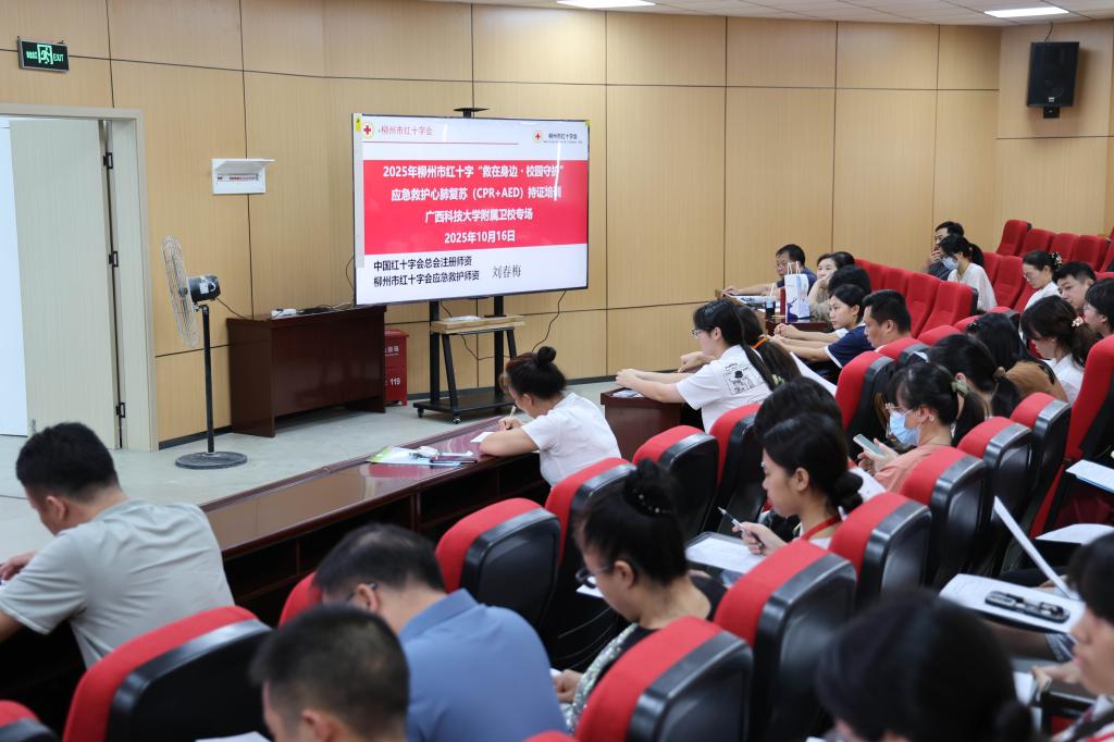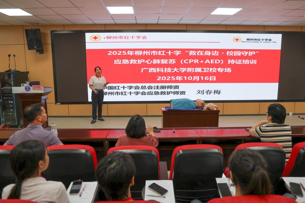为全面提升校园应急救护能力,保障师生生命健康安全,10月16日下午,我校邀请柳州市红十字会应急救护专家团队为师生开展题为“救在身边 校园守护”心肺复苏(CPR+AED)持证培训。本次培训由副校长黄富献主持,现场学习氛围热烈,成效显著。