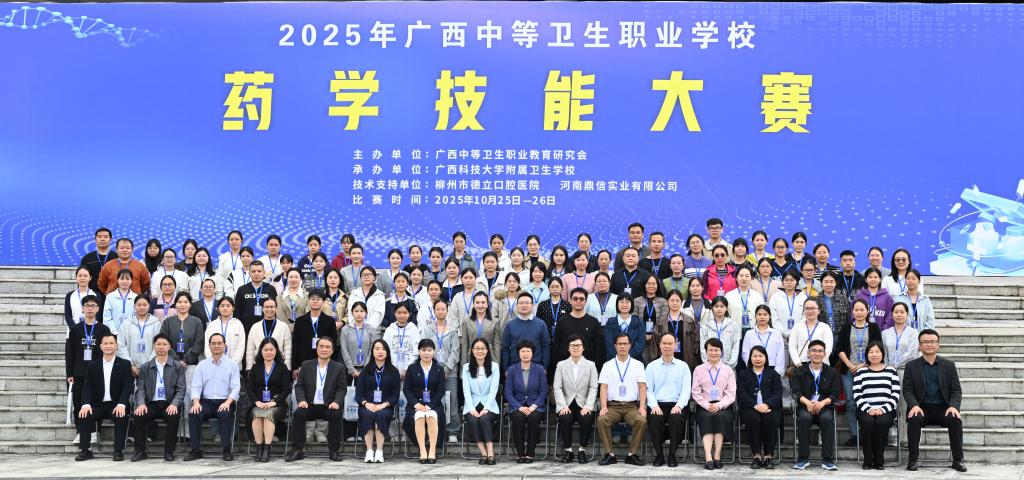 10月25日至26日,由广西中等卫生职业教育研究会主办、广西科技大学附属卫生学校承办的2025年广西中等卫生职业学校药学技能大赛在广西科技大学附属卫生学校顺利举行。来自全区15所中等卫生学校的45名选手齐聚龙城,围绕药学核心技能展开了为期2天的激烈角逐。本次大赛旨在深化贯彻职业教育教学改革要求,全面提升中等卫生学校药剂、中药专业学生的实践能力与综合素养,推动教学与实践的深度融合。