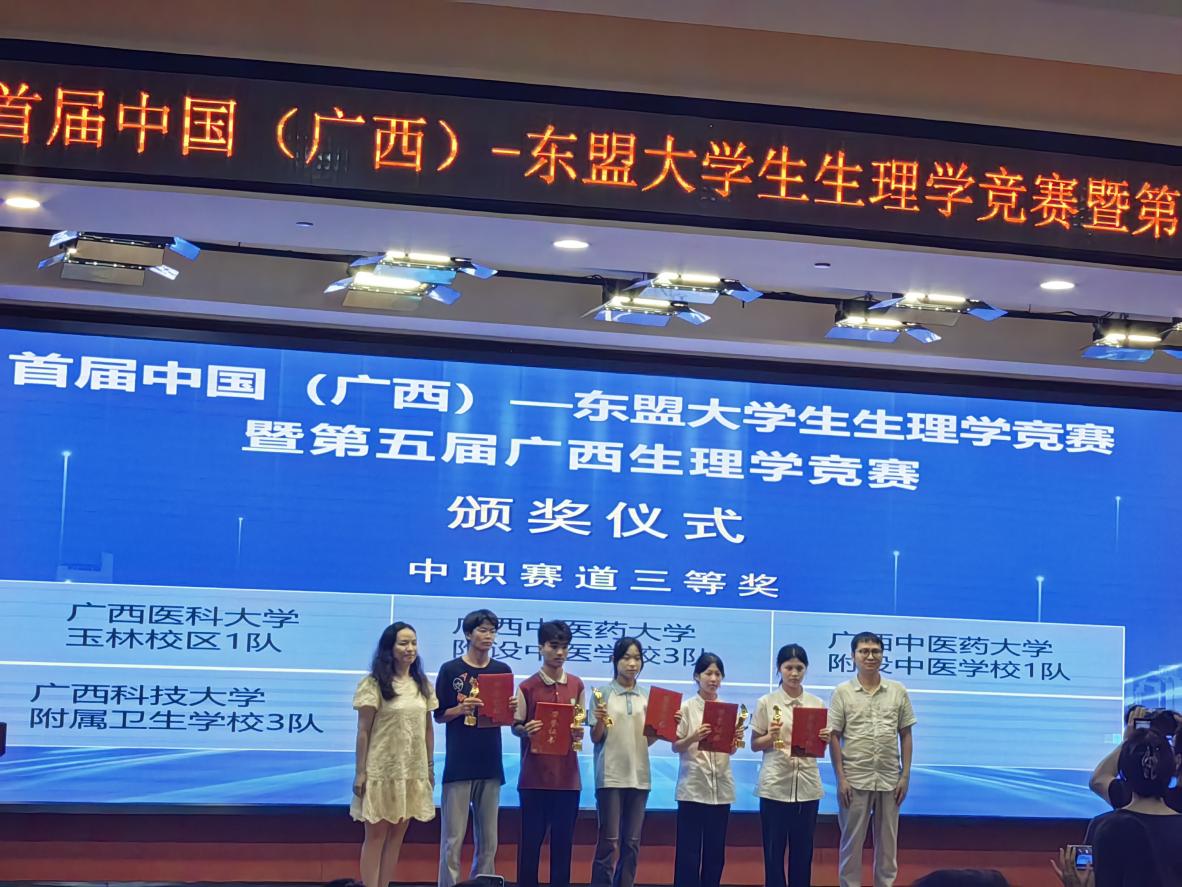 金秋送爽,硕果盈枝。首届中国(广西)——东盟大学生生理学竞赛暨第五届广西生理学竞赛(中职赛道)圆满落幕,我校学子们不负众望,载誉而归!与全区各校精英队伍的激烈比拼中,我校派出的3支参赛队伍全部获奖,分别斩获一等奖1项、二等奖1项、三等奖1项,勇夺本次大赛中职赛道团体总冠军,创下历史性佳绩!