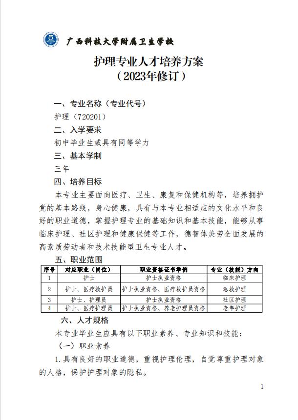 广西科技大学附属卫生学校2023年护理专业人才培养方案.pdf