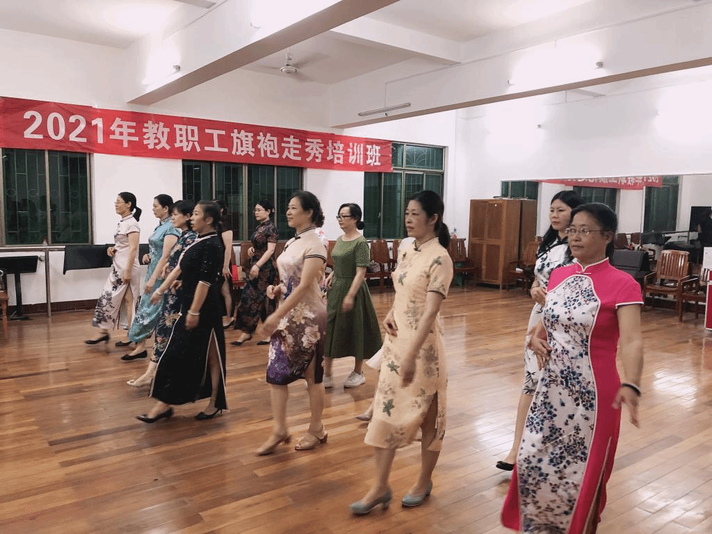 为进一步弘扬中国优秀传统文化,丰富我校女教工业余文化生活,提升广大女教工的优雅气质,展现新时代女性的端庄典雅和从容自信,营造高雅文明的校园文化氛围。应广大教师及旗袍爱好者要求,校工会4-6月举办了以“魅力女性,形体走秀”为主题的旗袍走秀培训班,来自各分工会的近30名女教职工参加了15个课时的培训。