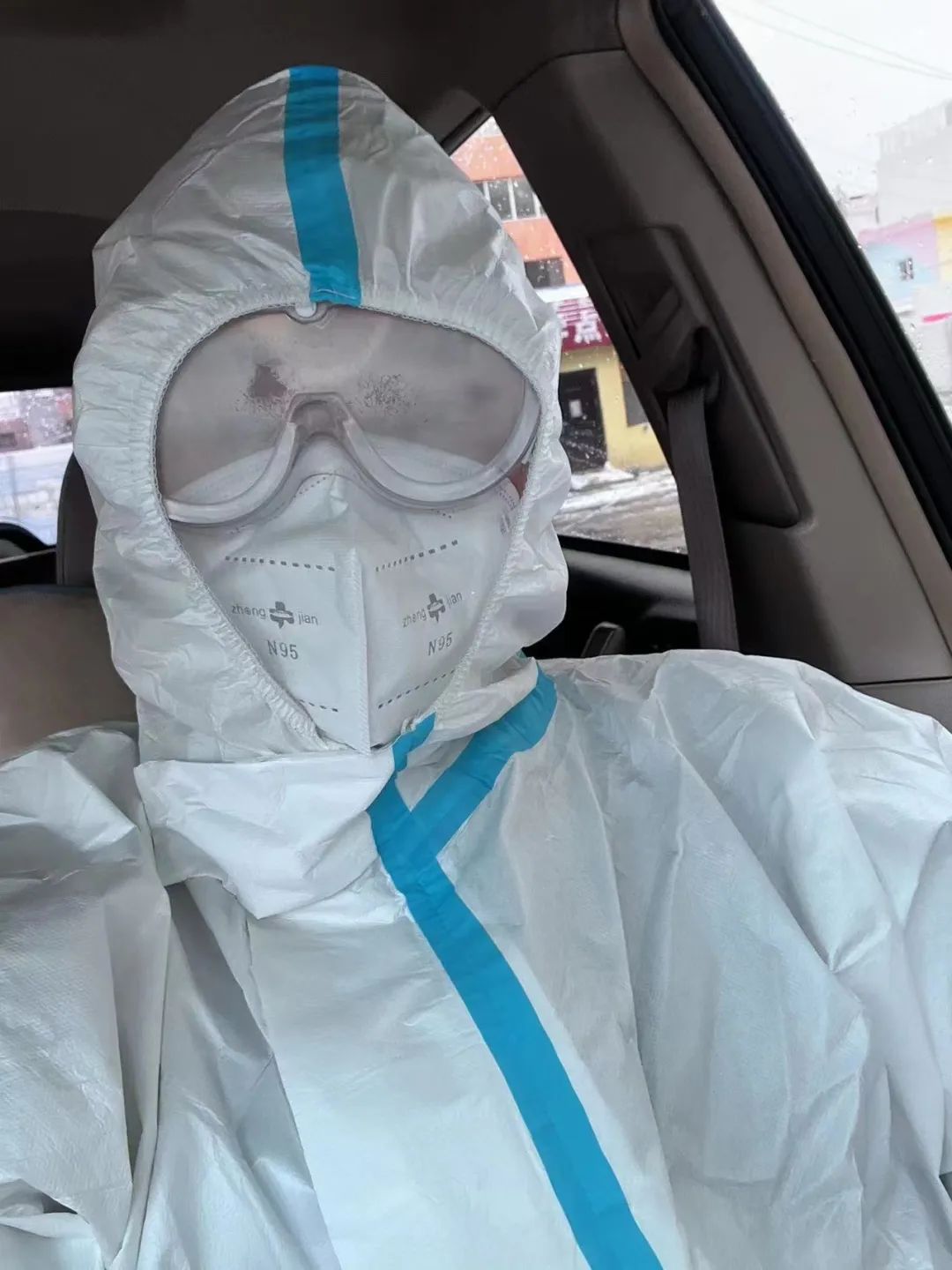 大雪过后的城市道路行走起来十分艰难,从白天到黑夜,他奔波在各个隔离酒店之间,等待、沟通、协调、办理手续.....雾气模糊了护目镜,湿滑的路面走坏了防护服.....就这样,一名又一名,一批又一批,他辗转多个酒店完成了护送学子安全归家的艰巨任务,回到家中已是午夜,肚子还是空空如也。