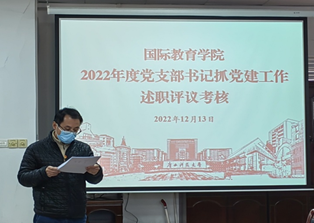 会上,教工党支部书记李燕洲、学生党支部书记潘鑫分别从履行党建主体责任、落实党支部标准化规范化建设责任、落实纪律建设、作风建设和反腐倡廉建设责任、落实党建工作考核责任等方面工作开展情况进行了述职。