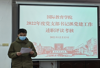 12月13日,我院党总支在科教楼1406-2会议室召开2022年度党支部书记抓党建工作述职评议考核会。学院党总支委员、专职组织员、党支部委员以及党员代表参加会议。会议由梁书杰副书记主持。