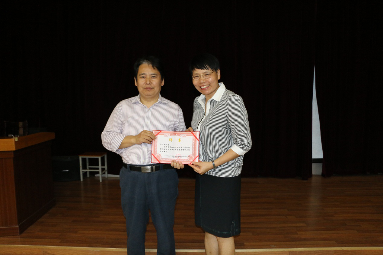 培训结束后,职业技术教育学院院长、国培基地主任罗秋兰老师向雷教授表示感谢,并为其颁发了全国重点建设职教师资培养培训基地特聘教授聘书。