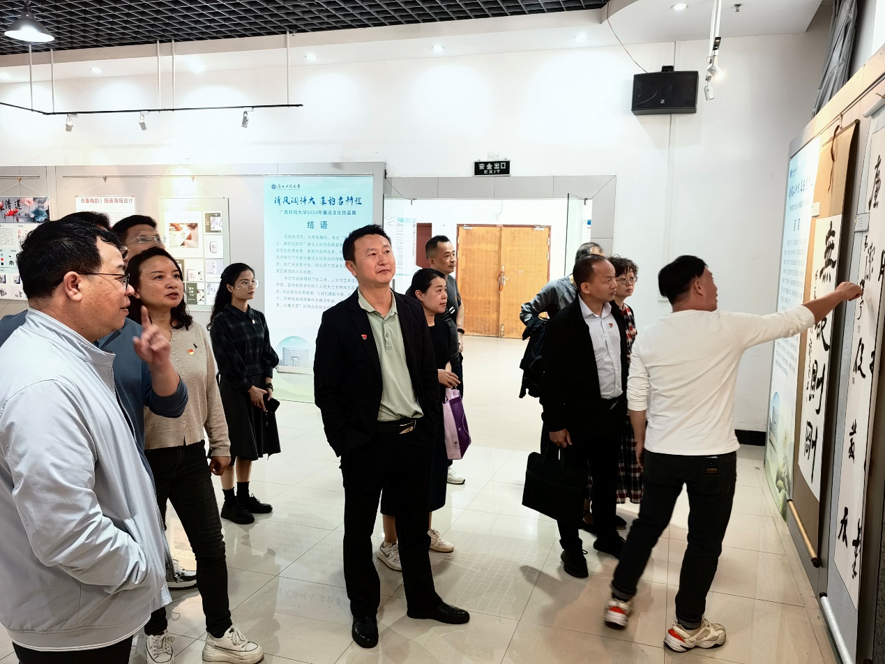 欧笛声表示,今天下午参观了“广西科技大学2024年廉洁文化作品展”,深入体会到丹墨书正气,清风颂廉洁。该展览是深入贯彻落实党的二十届三中全会精神,提升广大师生廉洁意识,不断推动清廉科大建设提质增效。