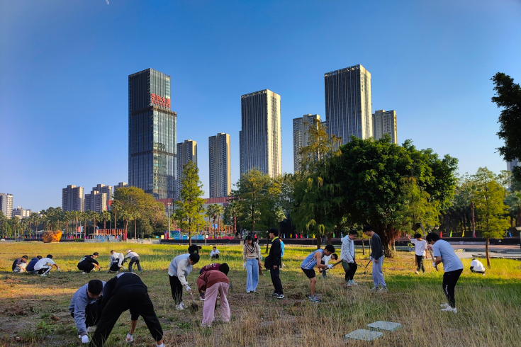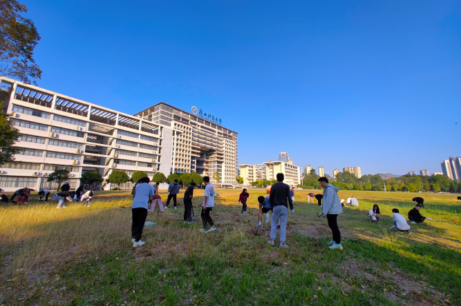 活动现场,师生们齐聚文昌校区宗元广场前,在广场的西面和南面草地上,开展了一场充满活力的除草实践活动。师生们纷纷抄起锄头、铲子,如春雷般投入火热的劳动。他们身姿矫健,犹如挥舞的音符,在草地上弹奏出一曲激昂高亢的劳动乐章。他们的热情如火如荼,凝聚成一股强大的力量,在这片土地上燃烧出最耀眼的火花。