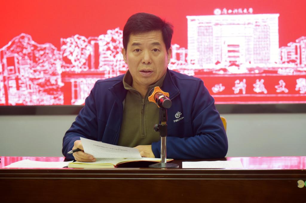 就如何贯彻落实好学校党委书记赵君提出的“四个更大”要求,秦培仁指出,一是要以思想破冰引领行动突围,在服务格局上实现新突破;二是要以效率革命推动攻坚克难,在项目落实上跑出加速度;三是要以作风淬炼锻造铁军队伍,在能力提升上展现新气象;四是要以命运共同体凝聚奋进力量,在协同发展上开创新局面。
