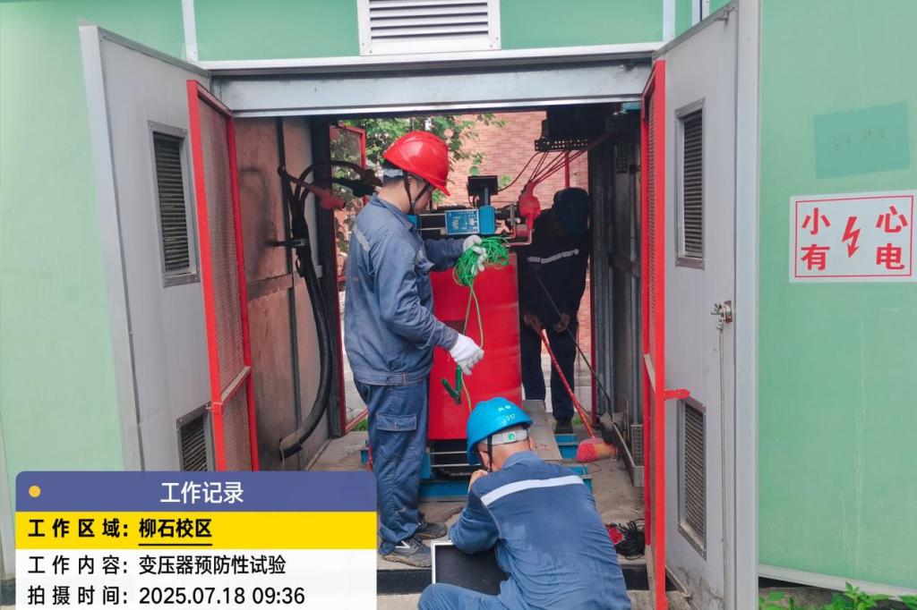 为提升校园供电可靠性,保障核心供电设备安全运行,7月14日至18日,我校水电中心联合具备高压试验资质的专业单位,对文昌、柳石、柳东三个校区的29台变压器集中开展了预防性试验。