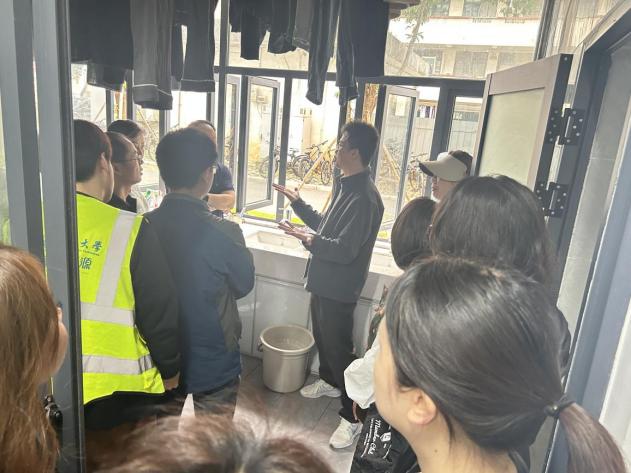 阳海峰对调研团的到来表示热烈欢迎,详细介绍了我校在水资源精细化管理方面取得的阶段性成效,以及合同节水项目的整体推进情况。随后,他带领调研团实地参观了校园节水设施,重点就智能水表全覆盖、非常规水喷灌系统应用、学生宿舍用水终端器具改造、地下管网精准探漏技术运用等情况进行现场讲解,并演示了智慧化水控平台的操作流程,直观展现我校节水工作的智能化、规范化水平。