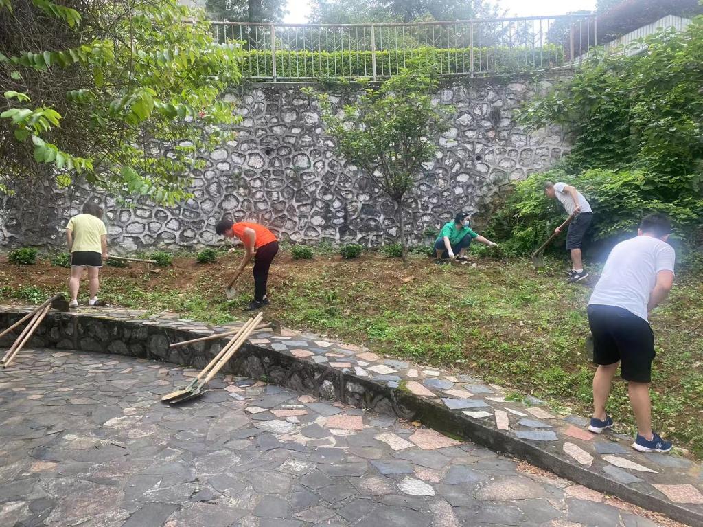 初夏时节,校园绿植在快速生长,处处绿意盎然。为了助力校园绿化美化工作,后勤管理处第二党支部组织开展了“义务除草 美化校园”主题党日活动。5月22日下午,第二党支部的党员们集中到鹿鸣湖旁,有的党员还主动从家里带来了有机肥,大家纷纷挥起锄头,锄草、松土、施肥,细心养护捐种的30棵栀子花树苗。3月由第二党支部全体党员捐种的栀子花苗,在党支部党员们以每日轮值的方式浇灌养护下,绿叶油亮,不断绽放出美丽洁白的花朵,小小的党员志愿服务责任区,给校园增添了新景。