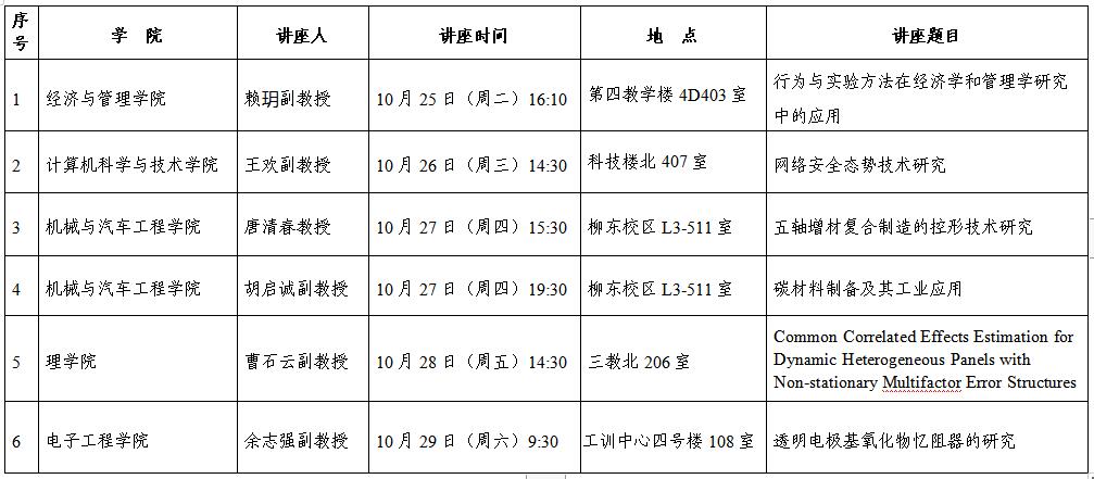 广西科技大学2022年10月份研究生学术讲座预告