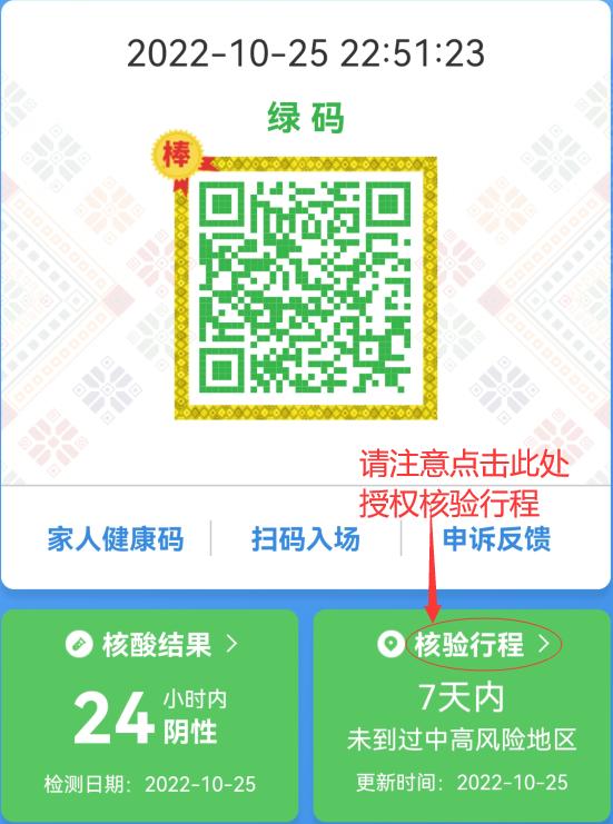 (一)考生进入考点时须按考点要求配合做好体温检测、身份和防疫核验。为提高进场效率,避免聚集,请考生间距1米,在扫码后将健康码、行程卡、核酸检测结果3项内容同时呈现在同一界面提交工作人员核验,如下图所示: