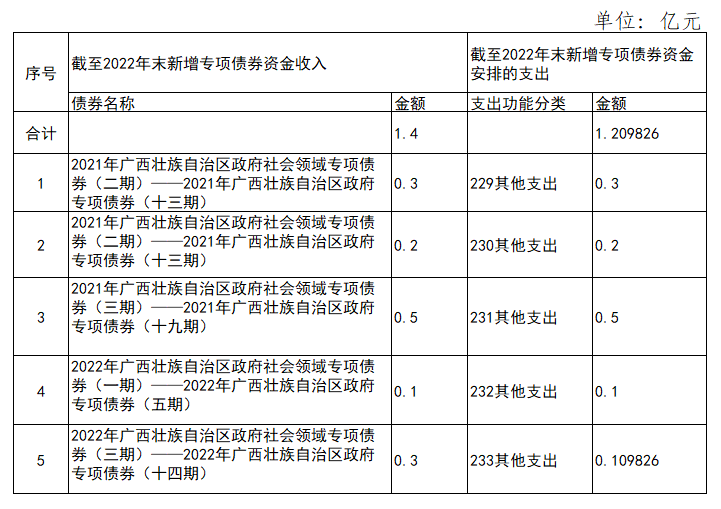 截至2022年末发行的新增地方政府专项债券资金收支情况表