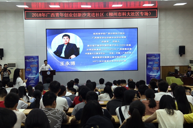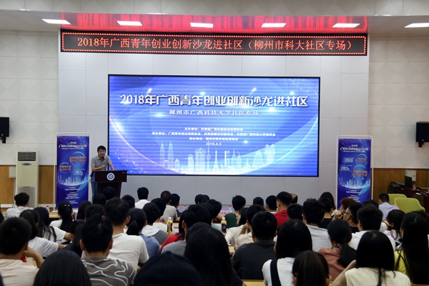 4月3日下午,2018年广西青年创业创新沙龙——广西科技大学进社区专场活动在我校图书馆报告厅举行,该活动旨在进一步贯彻落实党的十九大精神,促进青年创新创业,帮助青年增强创新意识,助推青年创业创新工作迈向新的台阶。本次活动由共青团广西区委主办,广西青年创业创新协会、共青团柳州市委员会、广西科技大学团委承办,柳州市青年创业促进会协办。