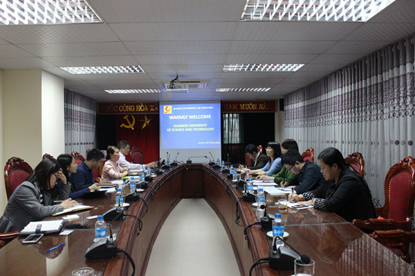 代表团一行首先访问了越南河内工业大学,受到了裴氏银副校长及外语系、国际交流处等相关部门领导的热烈欢迎。双方共同回顾了近几年两校在学生交换工作方面取得的成绩。在此基础上,今年河内工业大学计划继续扩大与我校的学生交换工作,决定以“3+1”、“2+2”的培养模式派汉语专业学生到我校学习。会议上,双方详细讨论了两校合作协议、课程学分置换等内容。