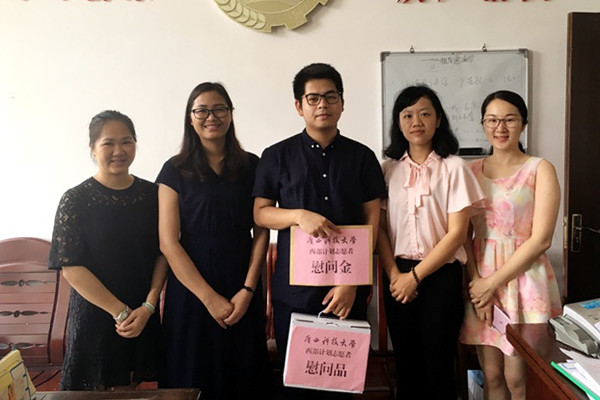 5月16日,校团委副书记韦齐齐、校团委实践部部长易敏来到防城港市防城区看望服务基层青年专项一线的管理学院毕业生黄家树;5月21日,校团委副书记朱广生、校团委宣传部部长蒋智华、校团委志愿者工作部部长秦文东来到桂林市恭城县分别看望了在恭城县政府办、恭城县团委服务的陆浩、赵圆圆。