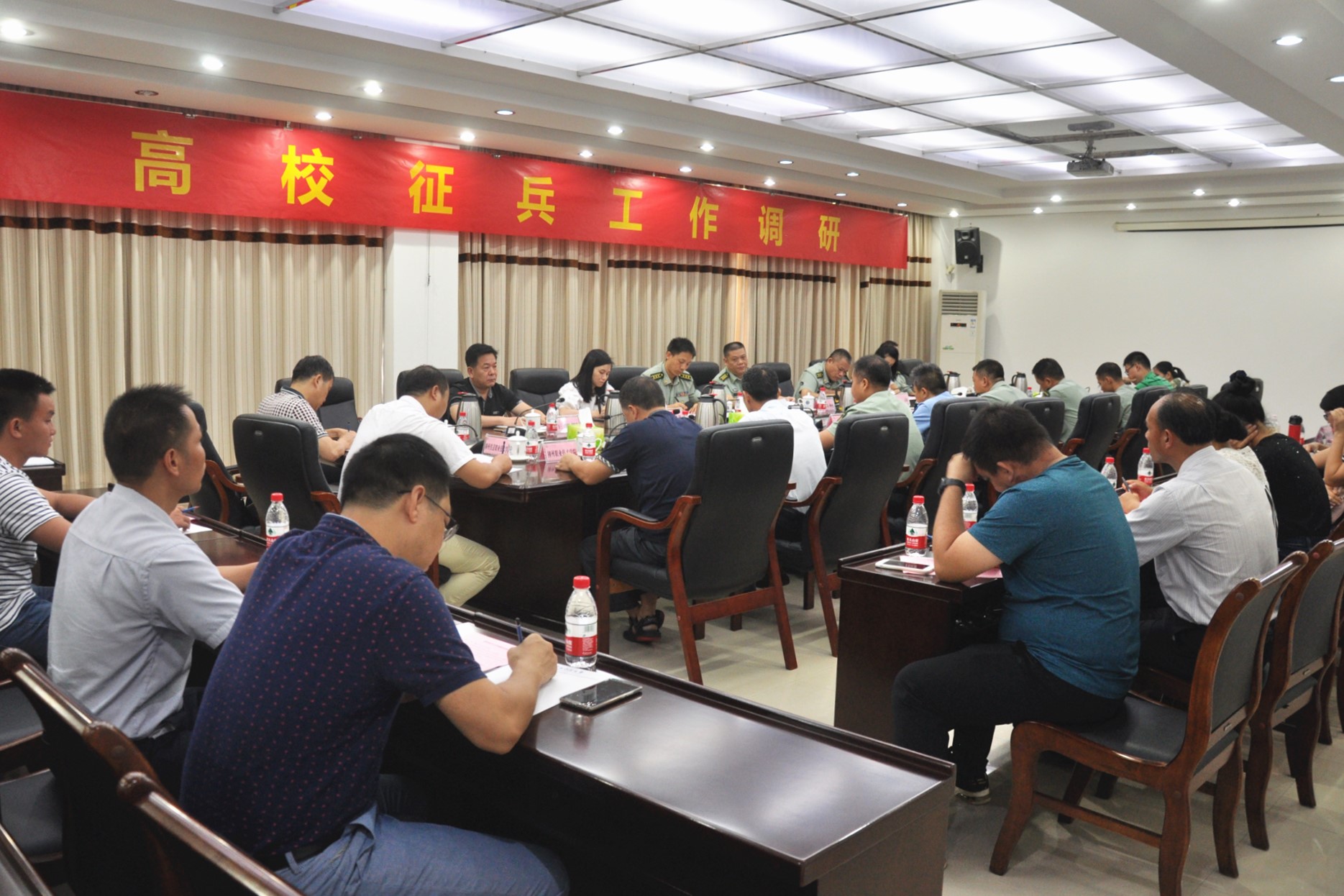 8月3日上午,柳州高校征兵工作调研座谈会在我校行政办公楼6-1室召开。广西军区动员局局长马扬州、柳州军分区副司令员韦岗,自治区教育厅、人社厅、民政厅相关处室领导,柳州市各城区武装部、柳州片区6所高校武装部、学生工作部领导,各高校辅导员及退伍学生代表共30余人参加会议。会议由马扬州主持。