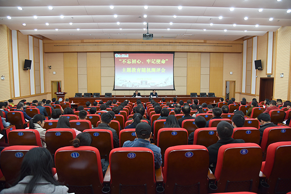评估以召开随机测评会和座谈会、开展个别访谈的方式进行。随机测评会由校党委书记满昌学主持。自治区党委“不忘初心、牢记使命”主题教育第八巡回指导组副组长邓丽兴出席并作填表说明。巡回指导组成员陈国华、杨新旺一同参加。部分校领导、中层干部、基层党支部书记、教师学生党员代表、群众代表等150人参与测评。各参测人员通过认真填写主题教育工作测评表的方式,对学校开展主题教育的总体情况,党员领导干部学习贯彻习近平新时代中国特色社会主义思想情况,讲专题党课,担当作为,转变作风,力戒形式主义、官僚主义情况,解决群众反映强烈问题情况,开展专项整治情况等进行了客观评价,并对学校主题教育提出意见建议。