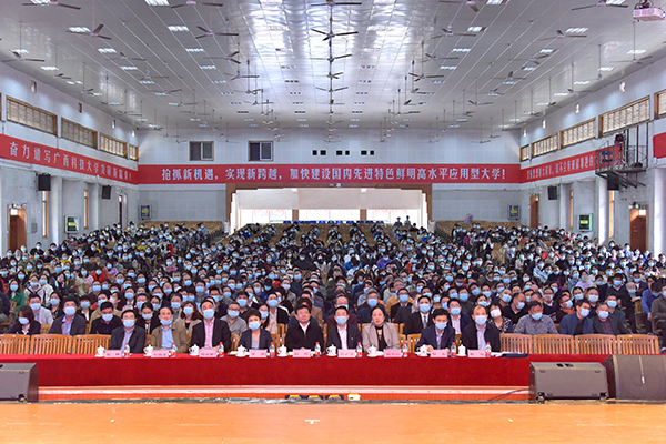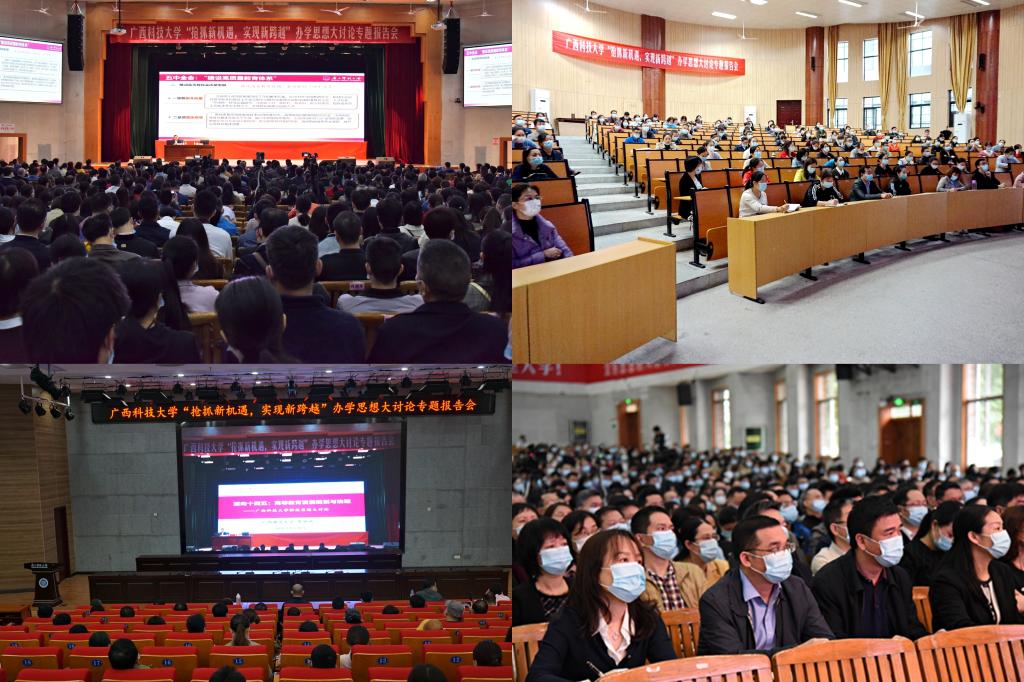 4月28日,我国著名高等教育专家、全国文化名家暨“四个一批”理论人才、广西优秀专家、广西师范大学校长、广西社科联副主席贺祖斌,应邀为我校办学思想大讨论作题为《面向“十四五”:高等教育发展规划与治理》的专题报告。报告会在东环校区大礼堂举行,学校领导、全体中层干部、教职员工1100多人参加报告会。学校党委书记赵君主持报告会。柳石校区、柳东校区设立分会场,近300人同步观看报告会直播。