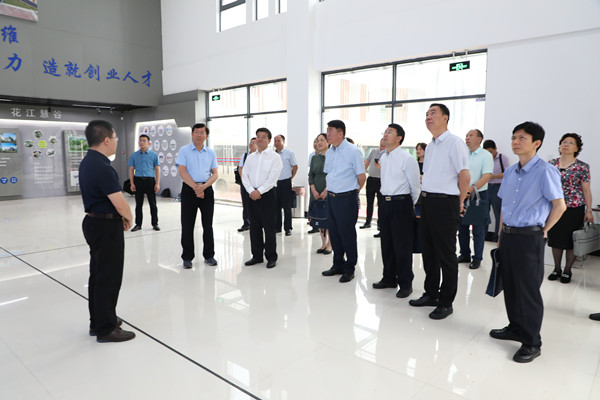 座谈会召开前,在唐平秋等领导的陪同下,赵君一行实地考察了卫星导航定位与位置服务国家地方联合工程研究中心、花江慧谷一期(四创中心)、政府数字传播与文化软实力研究中心等,并参观了校园。