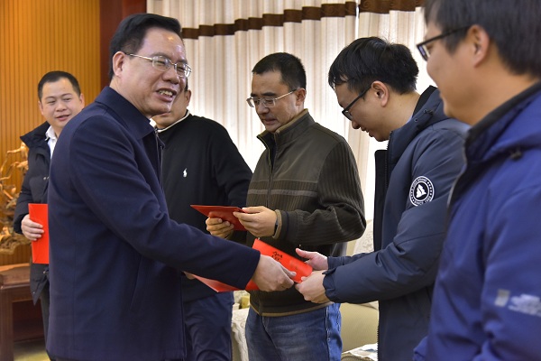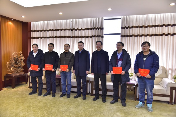 1月27日,柳州市政协副主席姚尹意代表柳州市委、市政府到校看望慰问第十三批拔尖人才——机械交通学院程涛、生化学院易弋、土建学院王家全、电气学院戴喜生和理学院方志杰5位老师。校党委常委、副校长杨晓波,人事处等部门领导参加慰问活动。