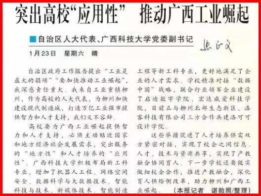 自治区人大代表、校党委副书记张正义,参加自治区十三届人大四次会议期间,就学校突出人才培养的“应用性”,服务地方经济社会发展接受《广西日报》记者采访。今日,《广西日报》在“履职日记”栏目,进行了报道。全文如下: