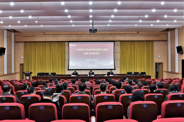 覃萍强调,意识形态工作是党的一项极端重要的工作,是学校重中之重的工作,全校各级党组织、各单位和党员干部、师生员工务必提高政治站位,以高度的政治自觉切实维护好学校政治安全和意识形态安全。为此,她指出,一要切实强化理论武装,深入学习宣传贯彻党的十九届五中全会精神,贯彻落实习近平总书记关于宣传思想工作的重要论述,认真学习《习近平谈治国理政》第三卷和《习近平总书记教育重要论述讲义》,持续推动习近平新时代中国特色社会主义思想入脑入心。二要压紧压实意识形态工作责任制,各二级党委(党总支)、各单位要做好意识形态和安全稳定重点领域风险隐患排查工作,加强师生的思想政治教育;要严格外事纪律,严守政策底线,认真落实学校“一会一报”“一事一报”制度,严把各类论坛、讲坛、讲座、报告会、研讨会、培训会的审查报批关;扎实推进“固‘三权’守阵地,担‘三责’履使命”意识形态工作专项督查,以督促建、以督促管、以督促改,推动意识形态工作责任制落实落细。三要持续保持疫情严防态势,谨防麻痹思想,各二级党委(党总支)、各单位要全面掌握离校外出进修、学习交流、探亲访友、旅游师生员工的行动轨迹、健康状况等,严格离校离柳审批流程,将感染风险降至最低。四要加强校园交通安全、消防安全管理,强化防范电信网络诈骗意识教育,确保校园和谐稳定。
