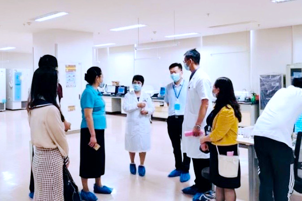 会后,秦小云一行实地走访了海南省肿瘤医院检验科、核医学科、临床技能培训中心以及实习生宿舍等处,并与我校实习生开展交流座谈,听取海南省肿瘤医院刘韦淞副院长对科教部教学管理工作汇报,全面掌握了解学生的学习生活情况。同学们还就个人实习生活情况进行了汇报。