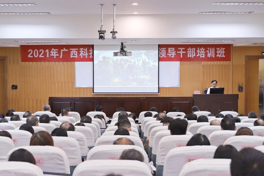 8月29日下午,中共广西区委党校副校长、广西行政学院副院长韦日平教授以《深入学习贯彻党的十九届五中全会精神》为题,为我校2021年全体中层领导干部培训班作第四讲。讲座由学校党委常委、副校长秦小云主持。