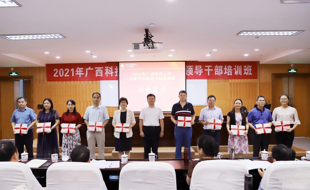 8月30日下午,学校2021年全体中层领导干部培训班结业仪式在中共广西区委党校举行。全体校领导和中层领导干部参加,学校党委常委、副校长张发钦主持结业仪式。