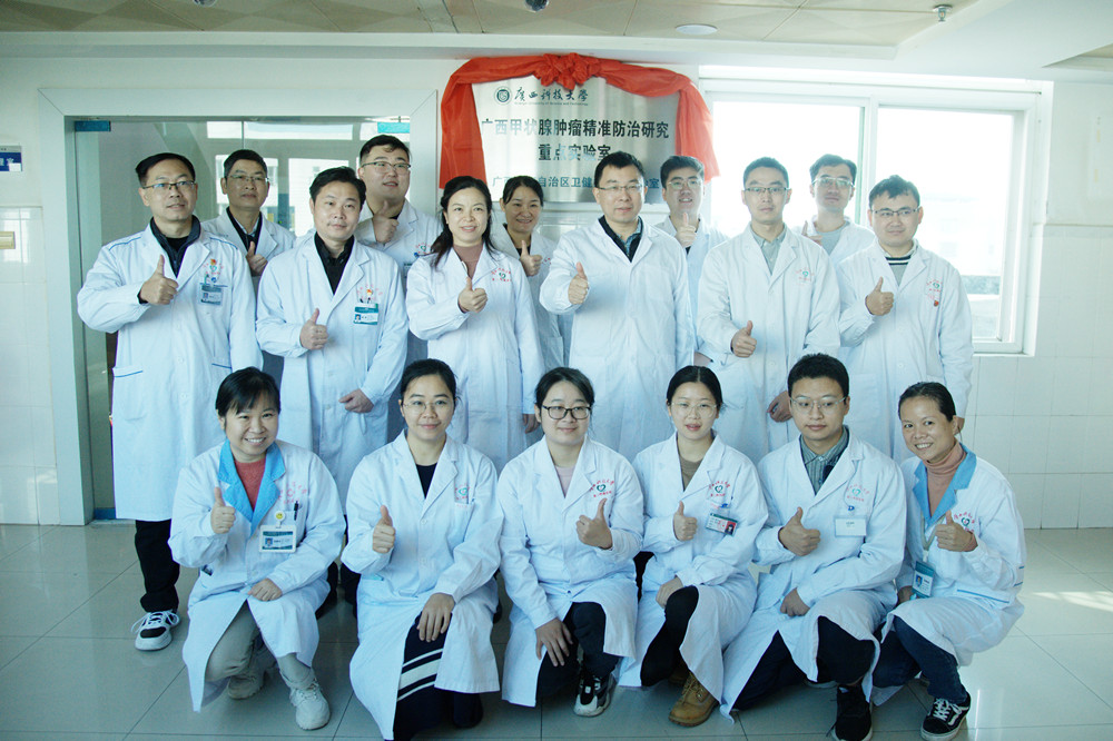 从1998年的广西甲状腺疾病专科医院,到广西科技大学肿瘤研究所、柳州市甲状腺防治工程技术研究中心,发展为广西科技大学甲状腺肿瘤重点实验室、自治区卫生健康委重点实验室,历经23年的科研探索,甲状腺学科已成为广西科技大学第二附属医院最强专科,实验室和临床平台一体化,甲状腺肿瘤收治人数和手术量位居广西前列。