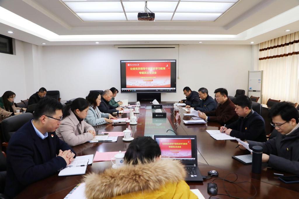 1月18日上午,马克思主义学院在东环校区办公楼5—1会议室召开了处级党员领导干部党史学习教育专题民主生活会。学校党委书记赵君到会指导。学院领导班子成员参加会议,学院师生党员代表列席会议。会议由学院党总支书记陈树春主持。