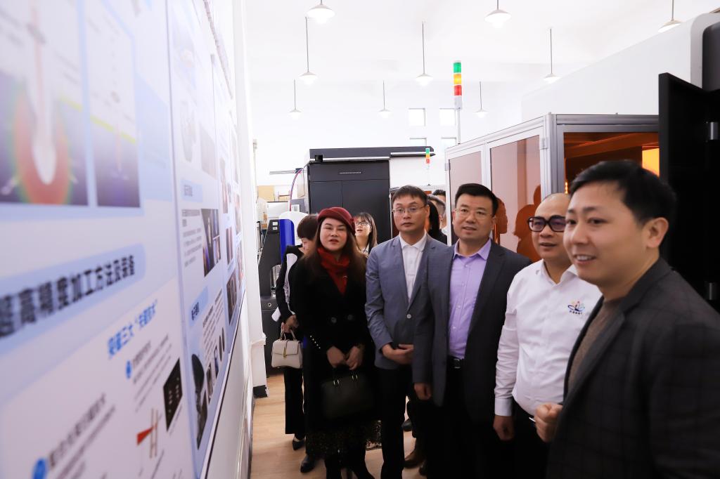 会前,江东洲一行还参观了学校规划馆,实地考察了超精密飞秒激光冷加工技术实验室、材料公共检测平台等。