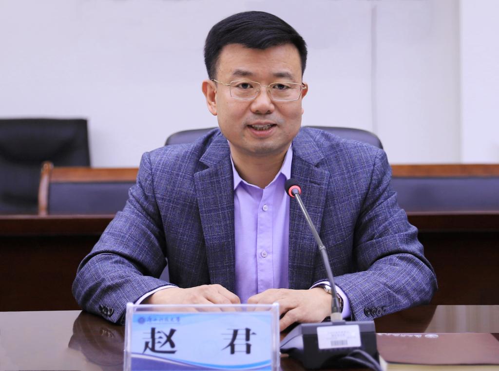 赵君对江东洲一行的到来表示热烈欢迎,并对学校概况、师资力量、学科建设、近期取得的主要成绩等方面的情况作了简要介绍。他表示,长期以来,学校坚持开放合作办学,坚持“校市相融,校企合作”办学理念,聚焦产教融合,聚焦地方产业高质量发展需求,积极推动特色办学。赵君希望能与“孔雀西南飞”课题组开展深度合作,共同推进高校产业园建设,共同推进产教融合,共同探索高层次人才引进新模式,充分发挥广西发展战略研究会智库和孔雀西南飞人才基地桥梁作用,致力于推动地方经济社会高质量发展。