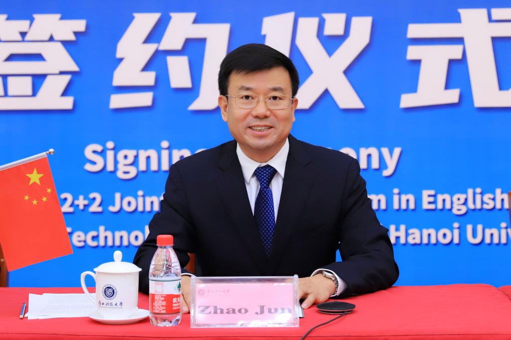 赵君在致辞中高度评价了近年来两校取得的合作成果,并向对方介绍了我校概况和最新发展动态。他指出,两校搭建的国际教育合作平台,不仅培养了具有国际视野的高素质青年人才,同时也是为中越两国培养民心相交、互相友好的后备力量。他勉励中越青年学子,珍惜机会,利用好两校教育资源,扎实学好知识,更好地为两国友好发挥作用。