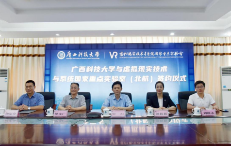 黎东指出,近年来,学校坚持以习近平新时代中国特色社会主义思想为指导,围绕落实立德树人根本任务,认真贯彻落实党的十九大和十九届历次全会精神和习近平总书记考察广西时的重要讲话精神,深刻领悟“两个确立”的决定性意义,坚决做到“两个维护”,坚持开放合作办学,秉承“校市相融、校企合作”的办学理念,深入开展清廉科大建设,营造良好政治生态和育人环境,加大办学体制机制创新力度,产学研协同推进,在高质量发展道路上不断取得新的成绩。这次与北航虚拟现实技术与系统全国重点实验室携手合作,既是落实国家高等教育开放办学战略的重要举措,也是学校借助北航全国重点实验室的平台和技术优势,加强创新性人才培养、提升教学科研水平、提高服务地方经济社会发展能力的有益探索。