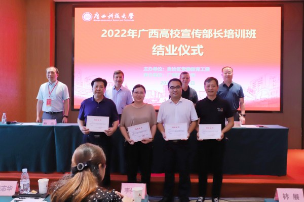 为深入学习宣传贯彻习近平新时代中国特色社会主义思想特别是习近平总书记关于宣传思想工作和关于青年工作的重要论述,贯彻落实党的十九届六中全会精神和自治区第十二次党代会精神,进一步提升我区高校宣传思想工作队伍的政治素养、理论水平和业务能力,6月20日—25日,由自治区党委教育工委主办,我校承办的2022年广西高校宣传部长培训班在我校(柳州)顺利举行。