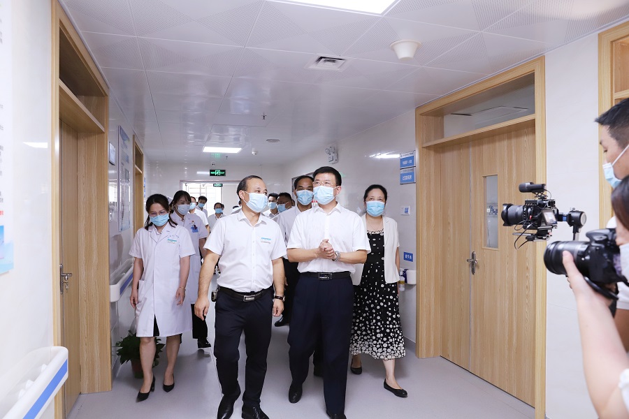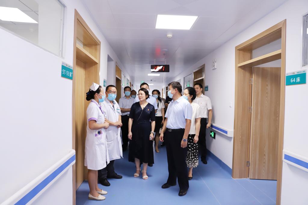 会后,医院举行了肿瘤疾病诊疗与研究中心揭牌仪式。赵君、秦小云与医院领导共同为中心揭牌。随后,赵君一行实地走访了医院肿瘤疾病诊疗与研究中心、呼吸与危重症医学科、心胸乳腺外科、全科医学科等病区,临床技能培训中心以及党建活动阵地等。